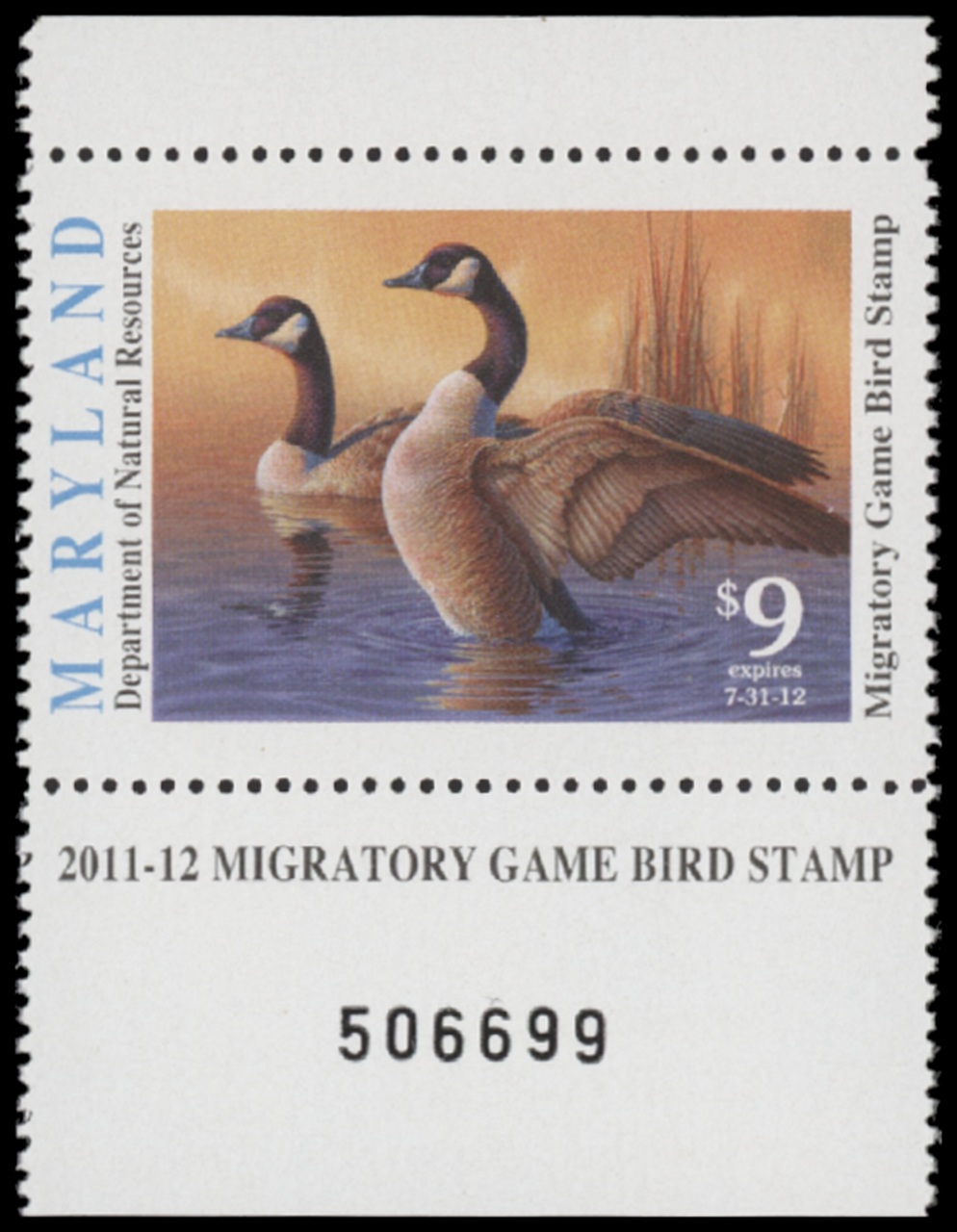 MD38 2011 State Duck Stamp. Mint Never Hinged. Very Fine. Canada Geese by Jim Taylor.