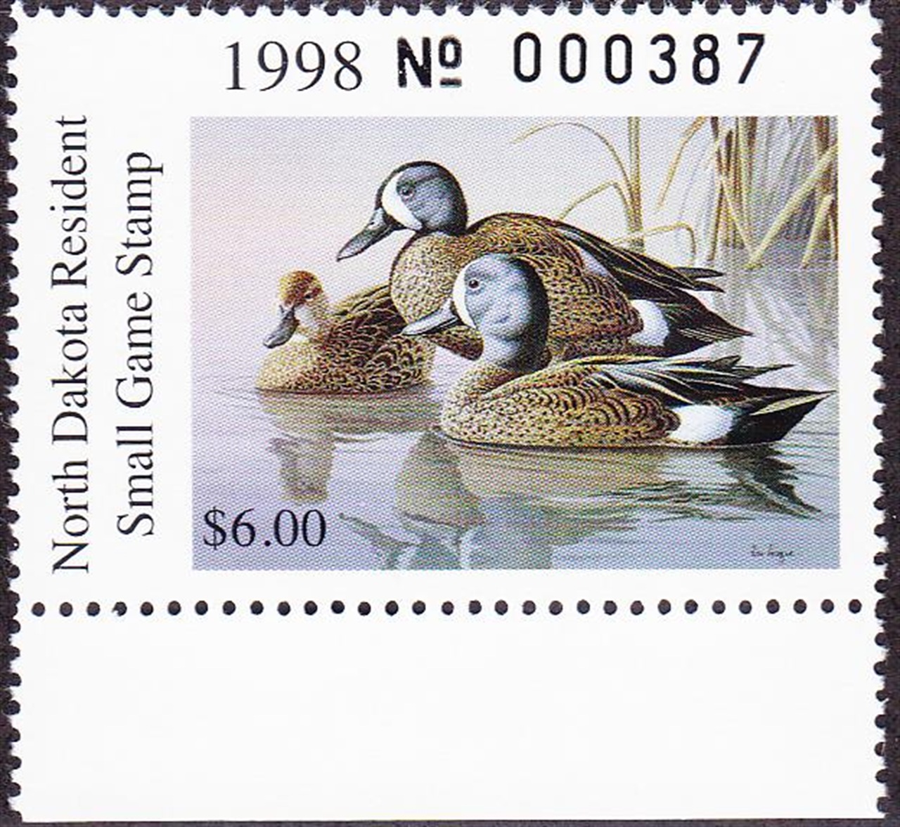 ND32 1998 State Duck Stamp. Mint Never Hinged. Very Fine. Blue-winged Teal by Ronald Louque.
