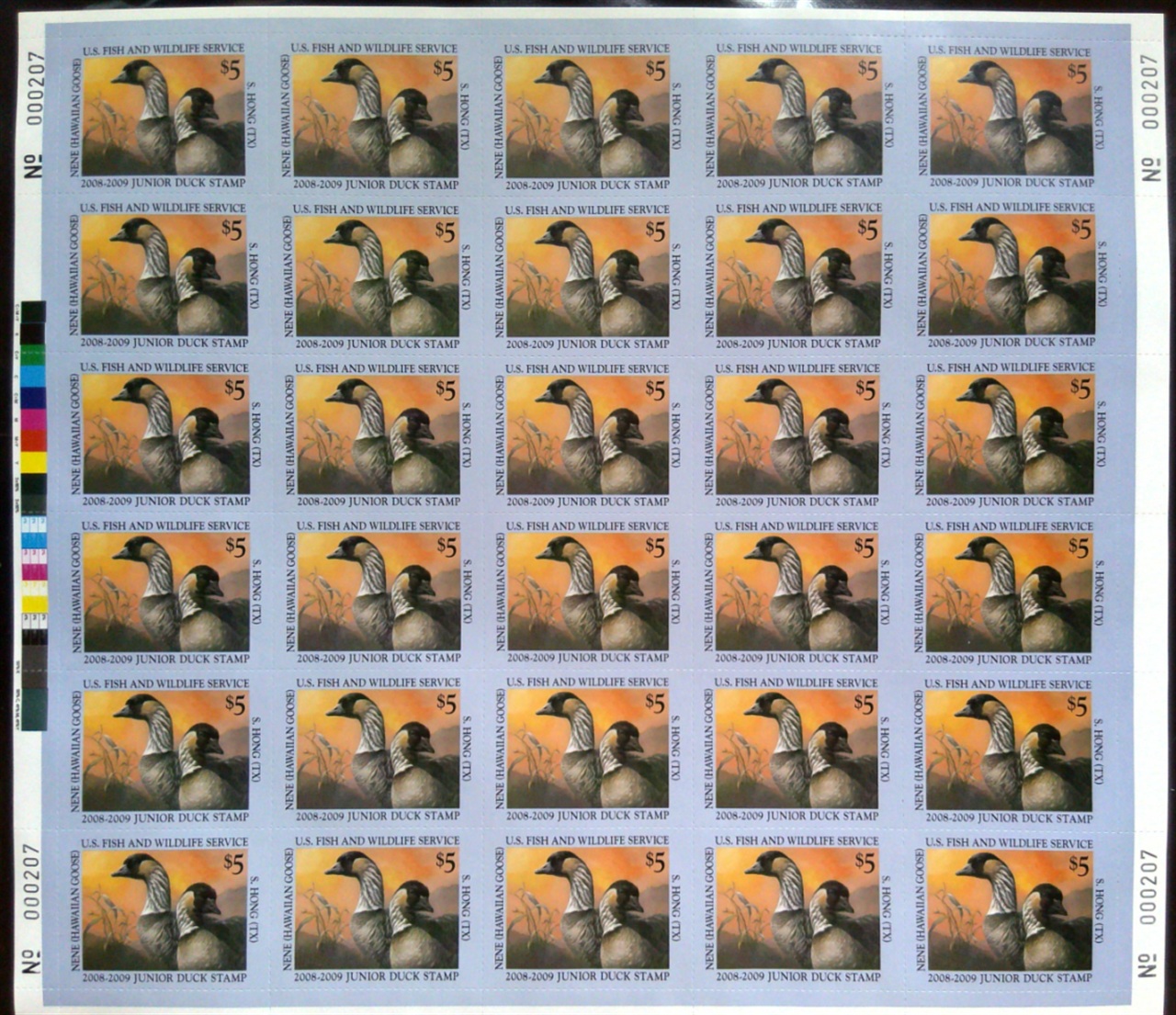 JDS16 2008 Federal Duck Stamp Full Sheet of 30 Stamps Offered at Less Than Face Value. Mint Never Hinged. Very Fine. Nene Goose by Seokkyun Hong.