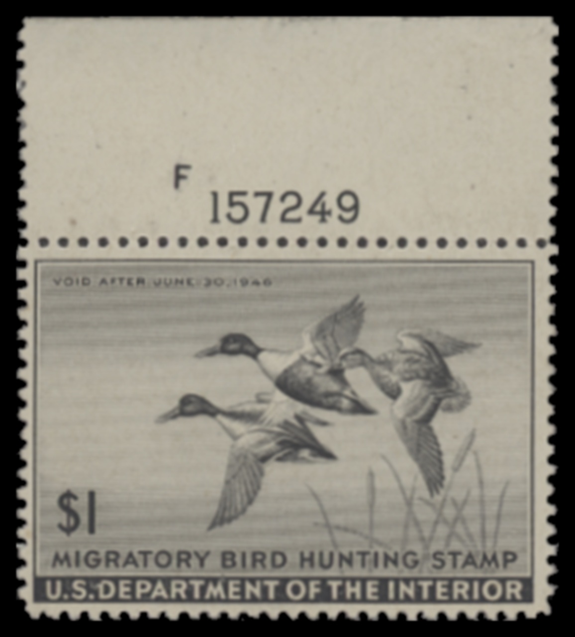 RW12 1945 Federal Duck Stamp. Mint Never Hinged. Fine - Very Fine. Shovelers by Owen Gromme.