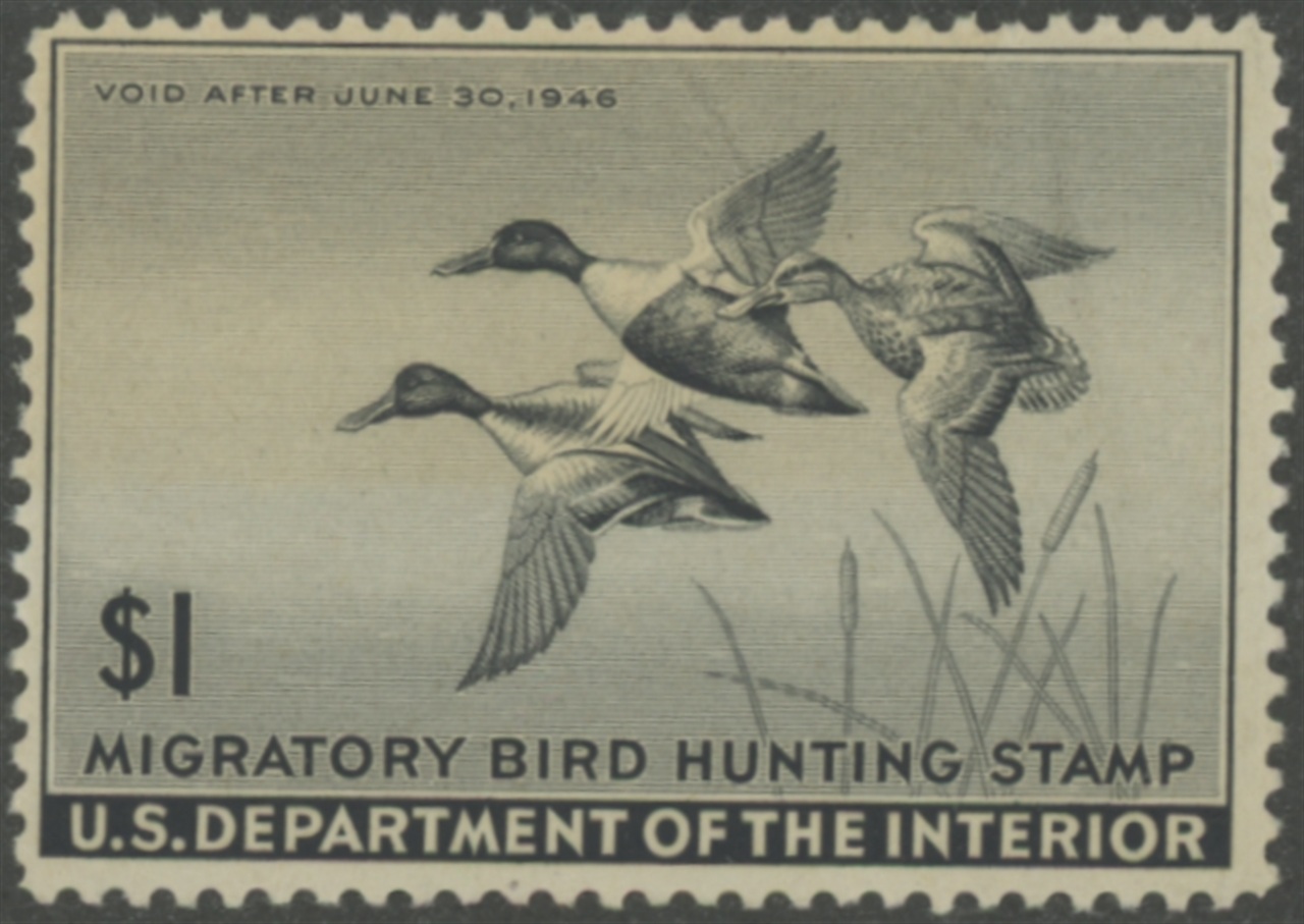 RW12 1945 Federal Duck Stamp. Mint Never Hinged. Fine - Very Fine. Shovelers by Owen Gromme.