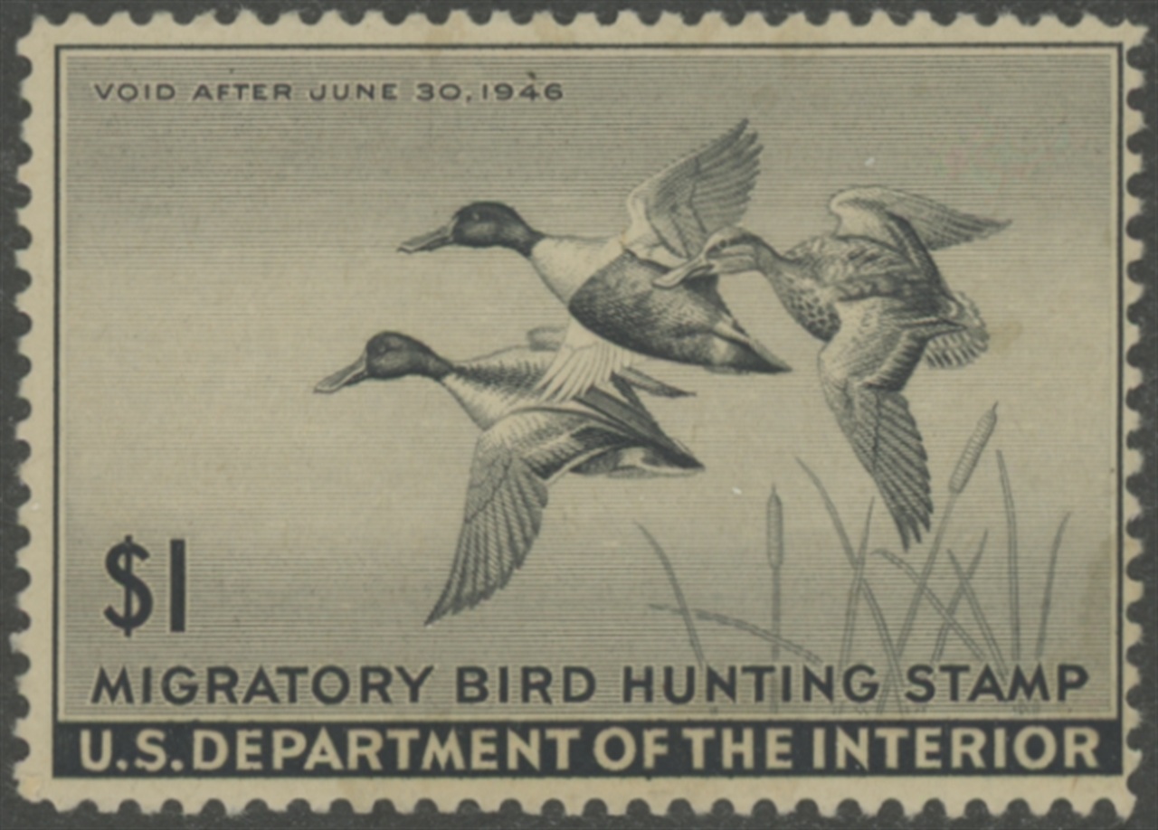 RW12 1945 Federal Duck Stamp. Mint Never Hinged, Gum Creases. Fine Centering. Shovelers by Owen Gromme.