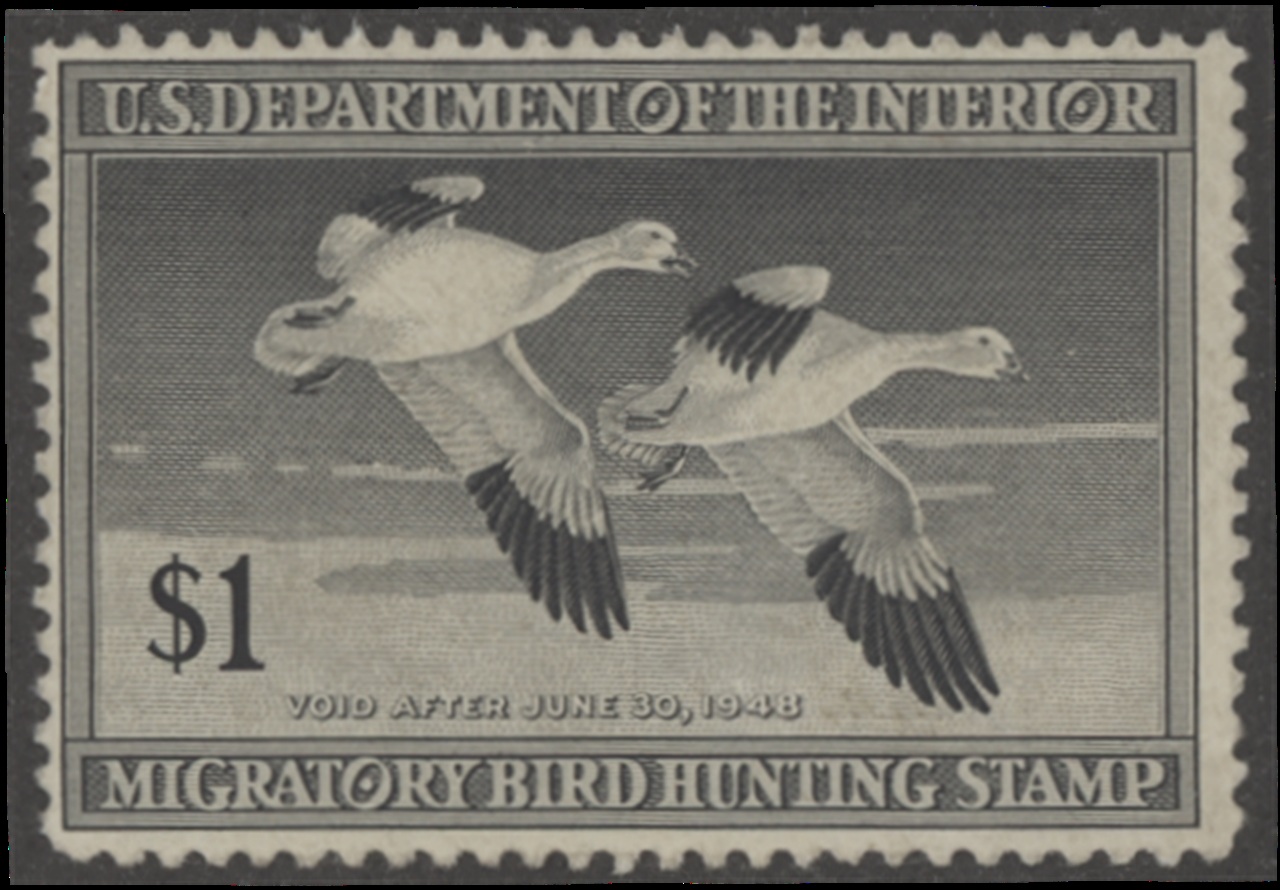 RW14 1947 Federal Duck Stamp. Unsigned, No Gum. Fine Centering. Snow Geese by Jack Murray.