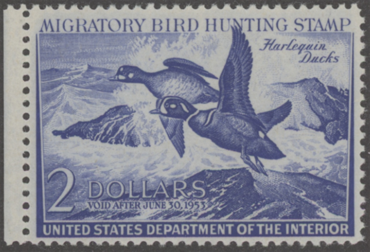 RW19 1952 Federal Duck Stamp. Mint Never Hinged. Fine - Very Fine. Harlequin Ducks by John H. Dick.