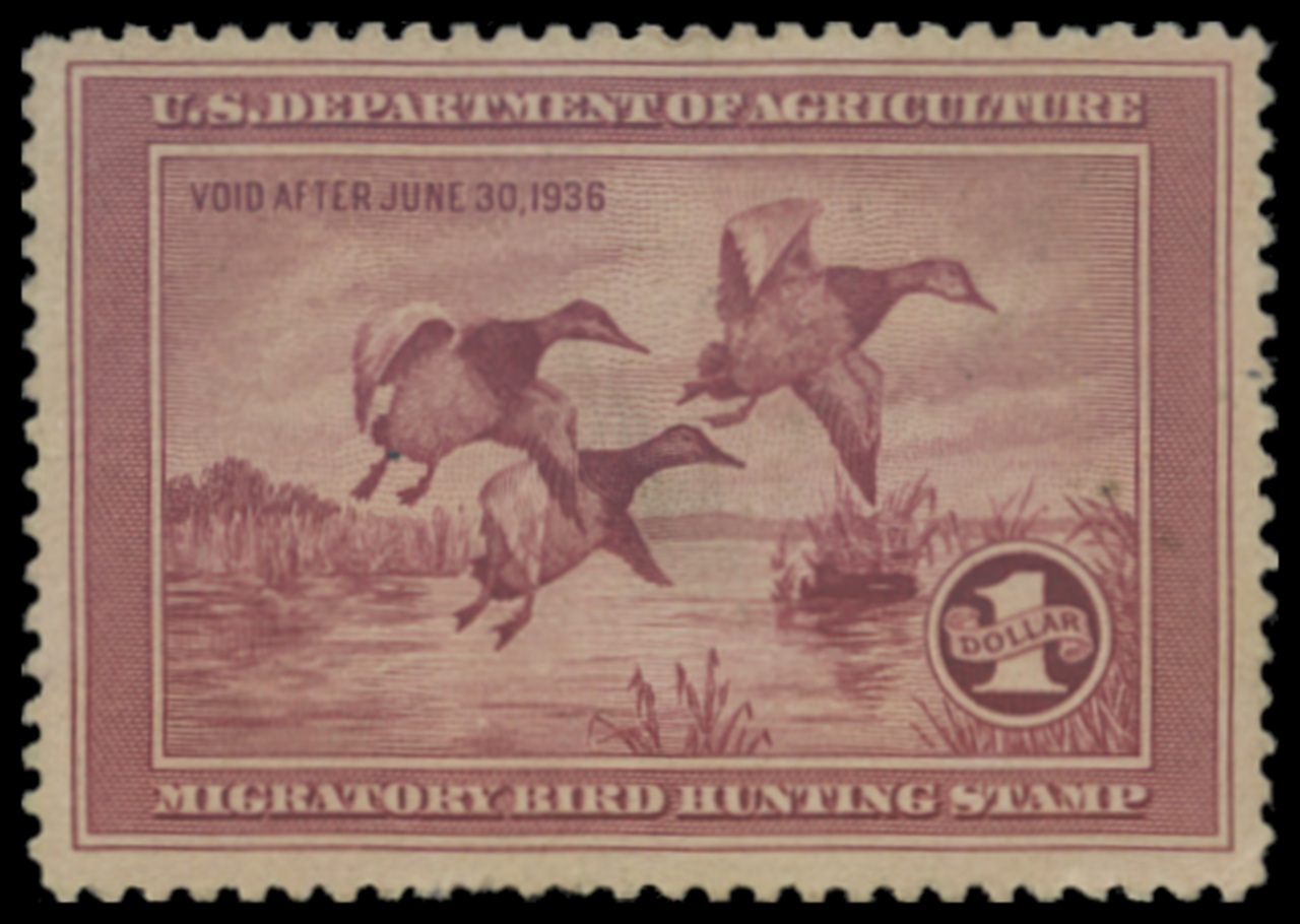 RW2 1935 Federal Duck Stamp. Unsigned, No Gum. Fine - Very Fine. Canvasbacks Taking to Flight by Frank Benson.