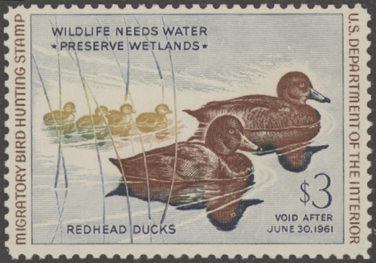 RW27 1960 Federal Duck Stamp. Mint Never Hinged. Fine Centering. Redhead Ducks by John Ruthven.