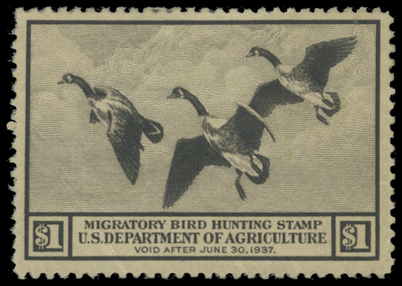 RW3 1936 Federal Duck Stamp. Mint Lightly Hinged. Fine - Very Fine. Canada Geese in Flight by Richard Bishop.