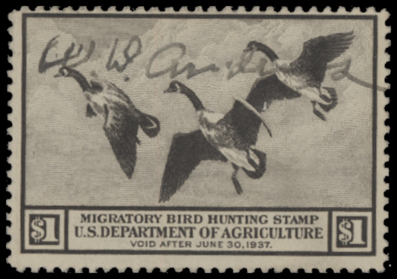 RW3 1936 Federal Duck Stamp. Used. Fine - Very Fine. Canada Geese in Flight by Richard Bishop.