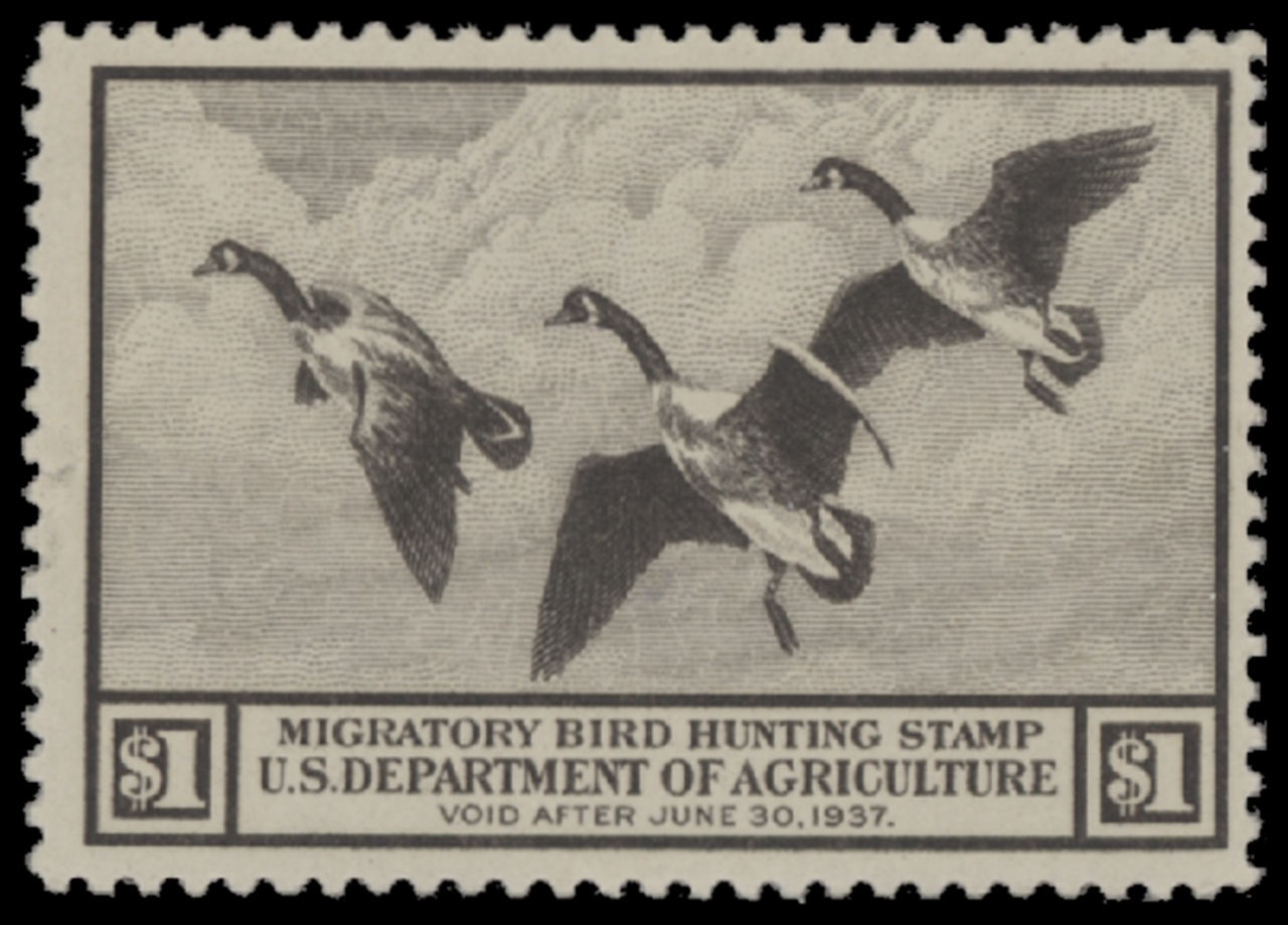 RW3 1936 Federal Duck Stamp. Mint Never Hinged. Fine - Very Fine. Canada Geese in Flight by Richard Bishop.