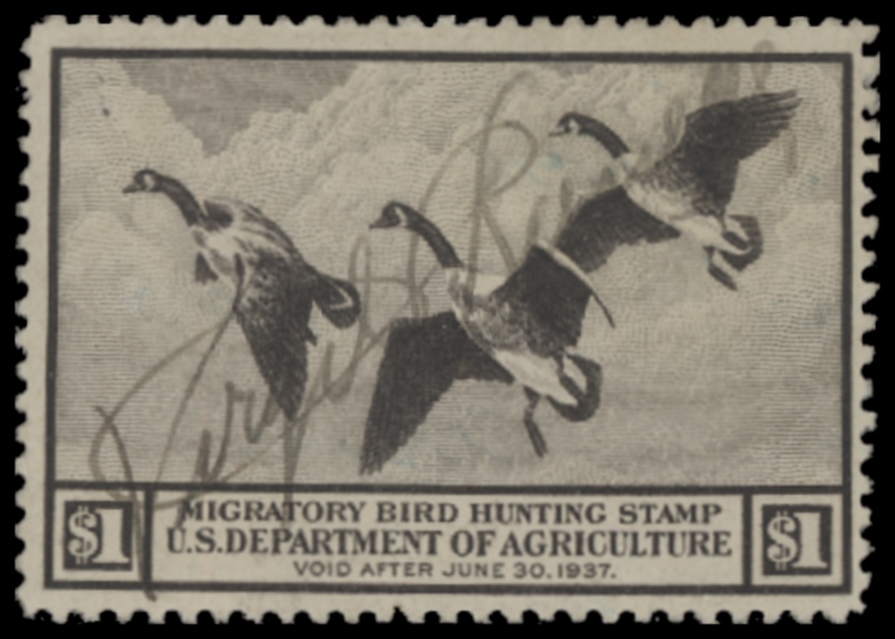 RW3 1936 Federal Duck Stamp. Used. Fine - Very Fine. Canada Geese in Flight by Richard Bishop.