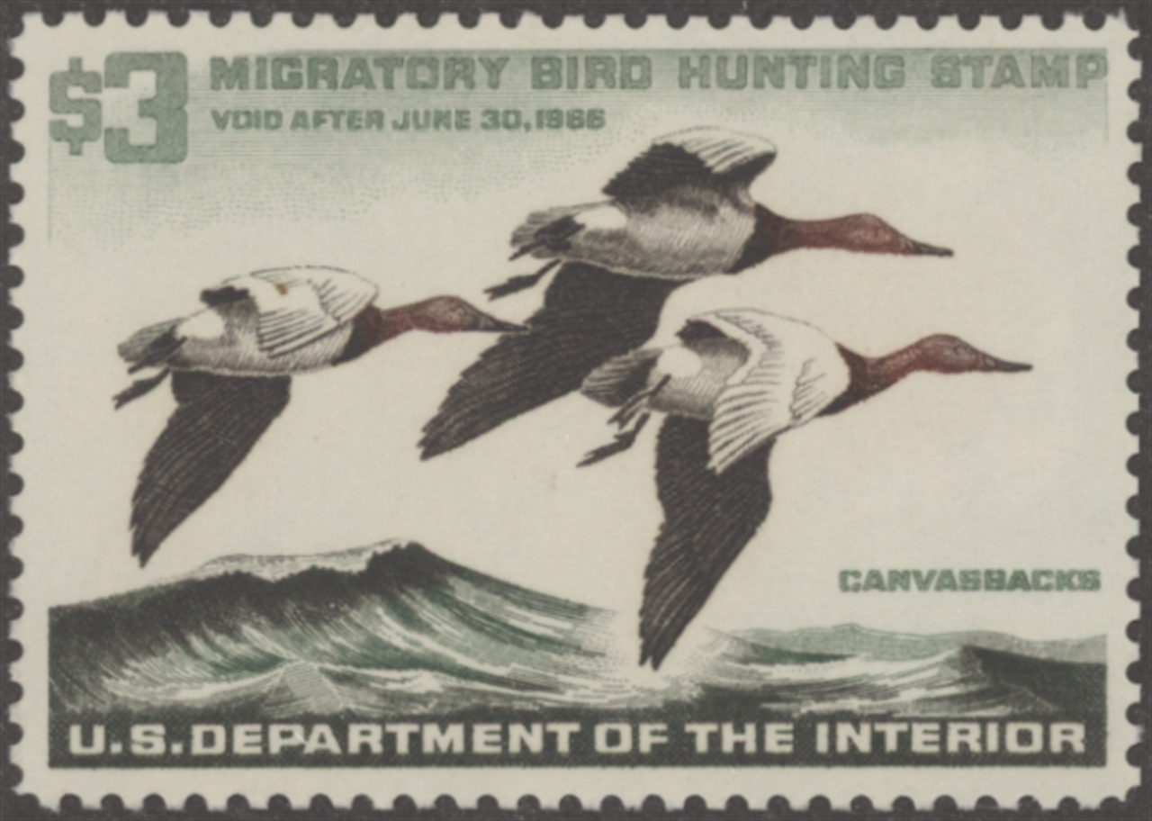 RW32 1965 Federal Duck Stamp. Mint Never Hinged. Very Fine. Canvasbacks by Ron Jenkins.