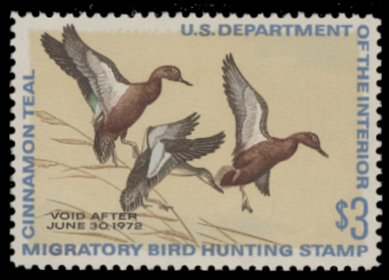 RW38 1971 Federal Duck Stamp. Mint Never Hinged. Fine - Very Fine. Cinnamon Teal by Maynard Reece.
