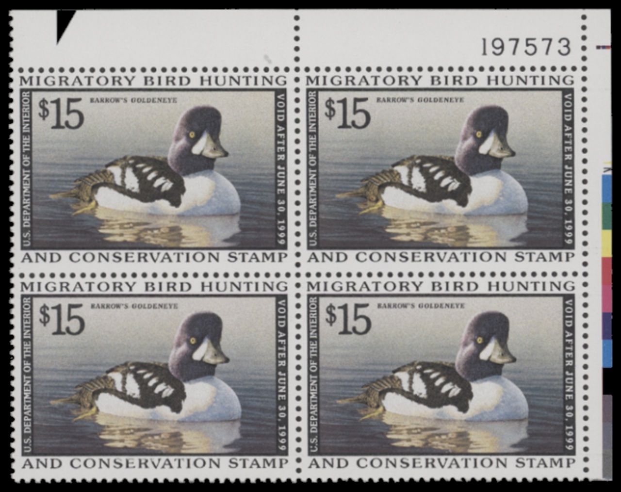 RW65 1998 Federal Duck Stamp. Mint Never Hinged. Fine - Very Fine. Barrow's Golldeneye by Robert Steiner.