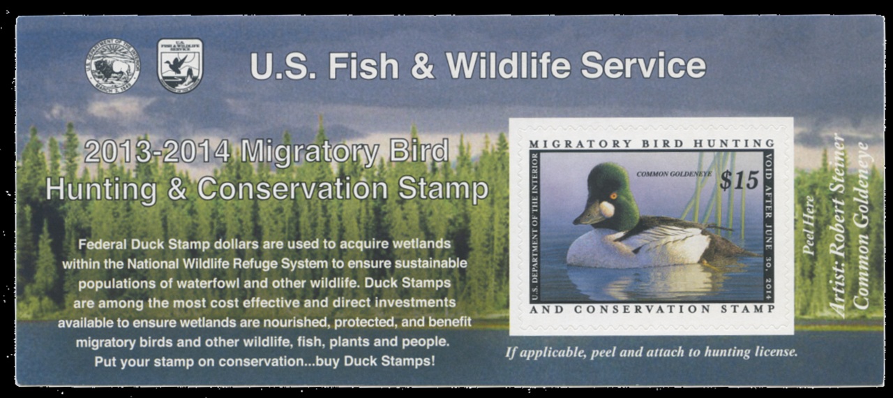 RW80A 2013 Federal Duck Stamp. Mint Lightly Hinged. Fine - Very Fine. Common Goldeneye by Robert Steiner.