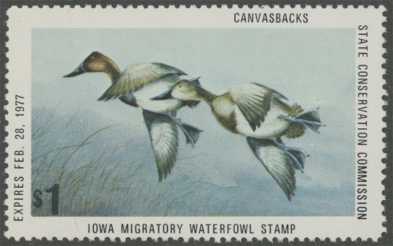 IA5 1976 State Duck Stamp. Mint Never Hinged. Very Fine. Canvasbacks by Nick Klepinger.