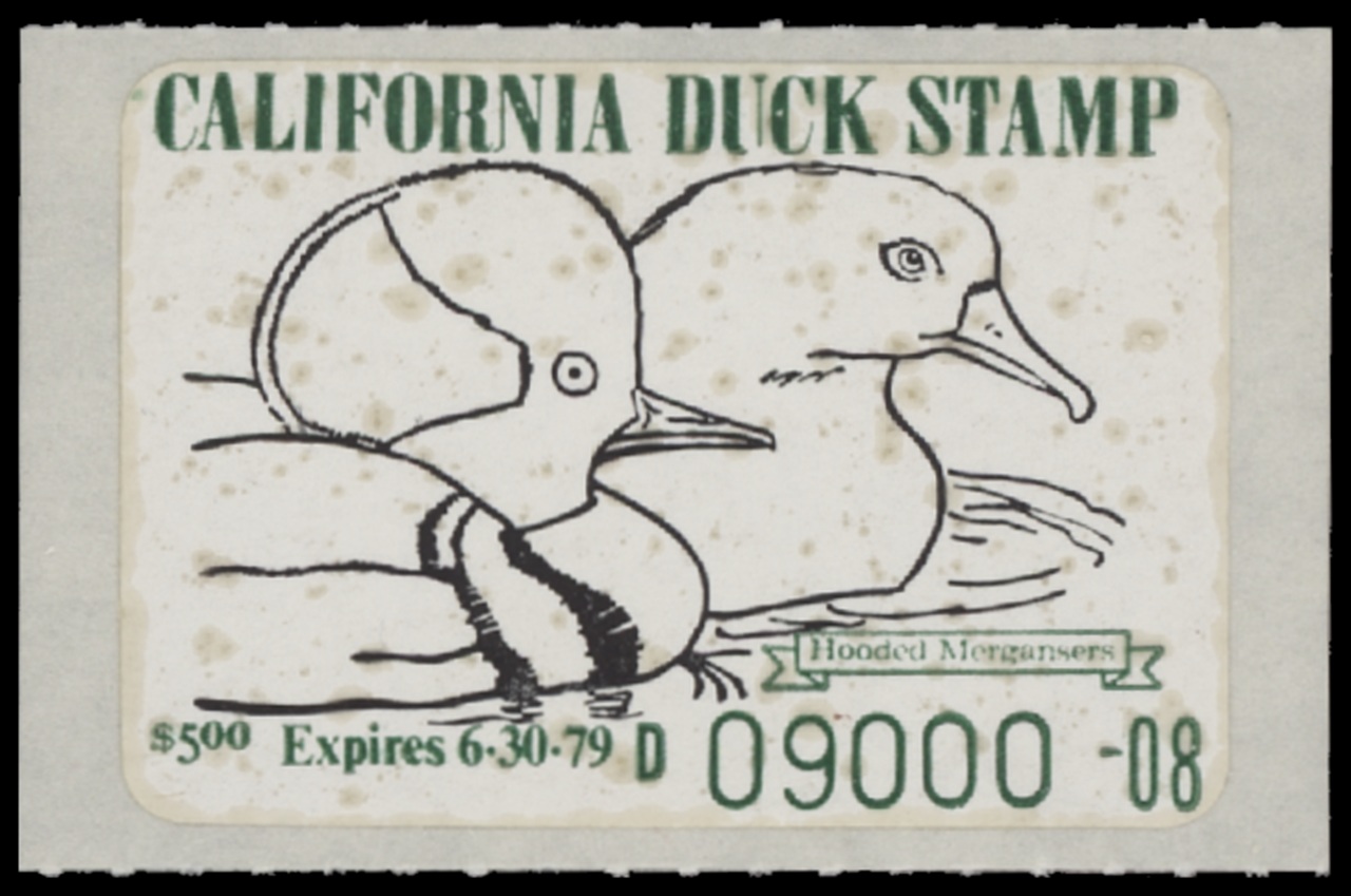 CA8 1978 State Duck Stamp. Mint Never Hinged. Very Fine. Gum Bleed Through As Expected. Hooded Mergansers by Ken Michaelson.