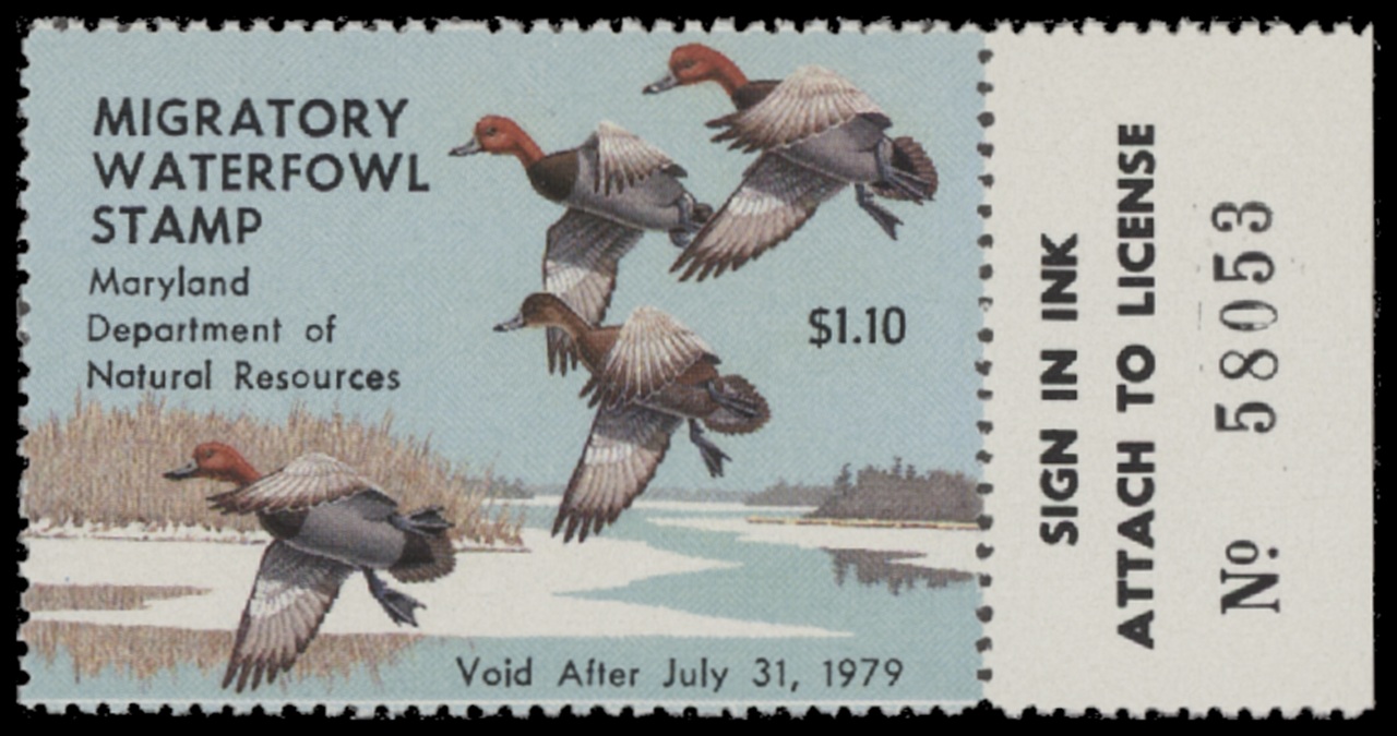 MD5 1978 State Duck Stamp. Mint Never Hinged. Very Fine. Redhead Ducks by Stanley Stearns.