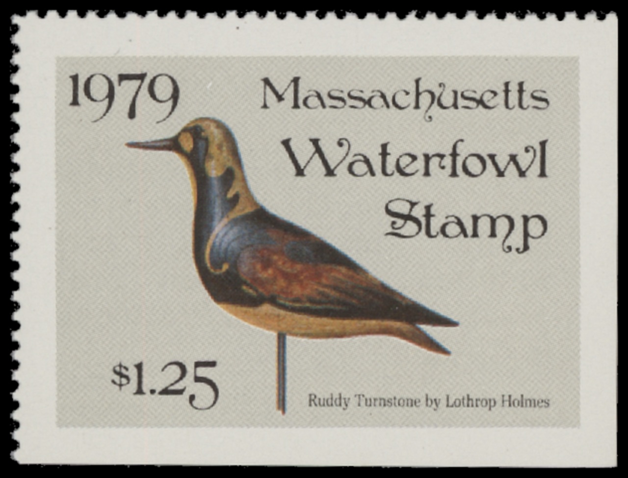 MA6 1979 State Duck Stamp. Mint Never Hinged. Very Fine. Ruddy Turnstone by Randy Julius.