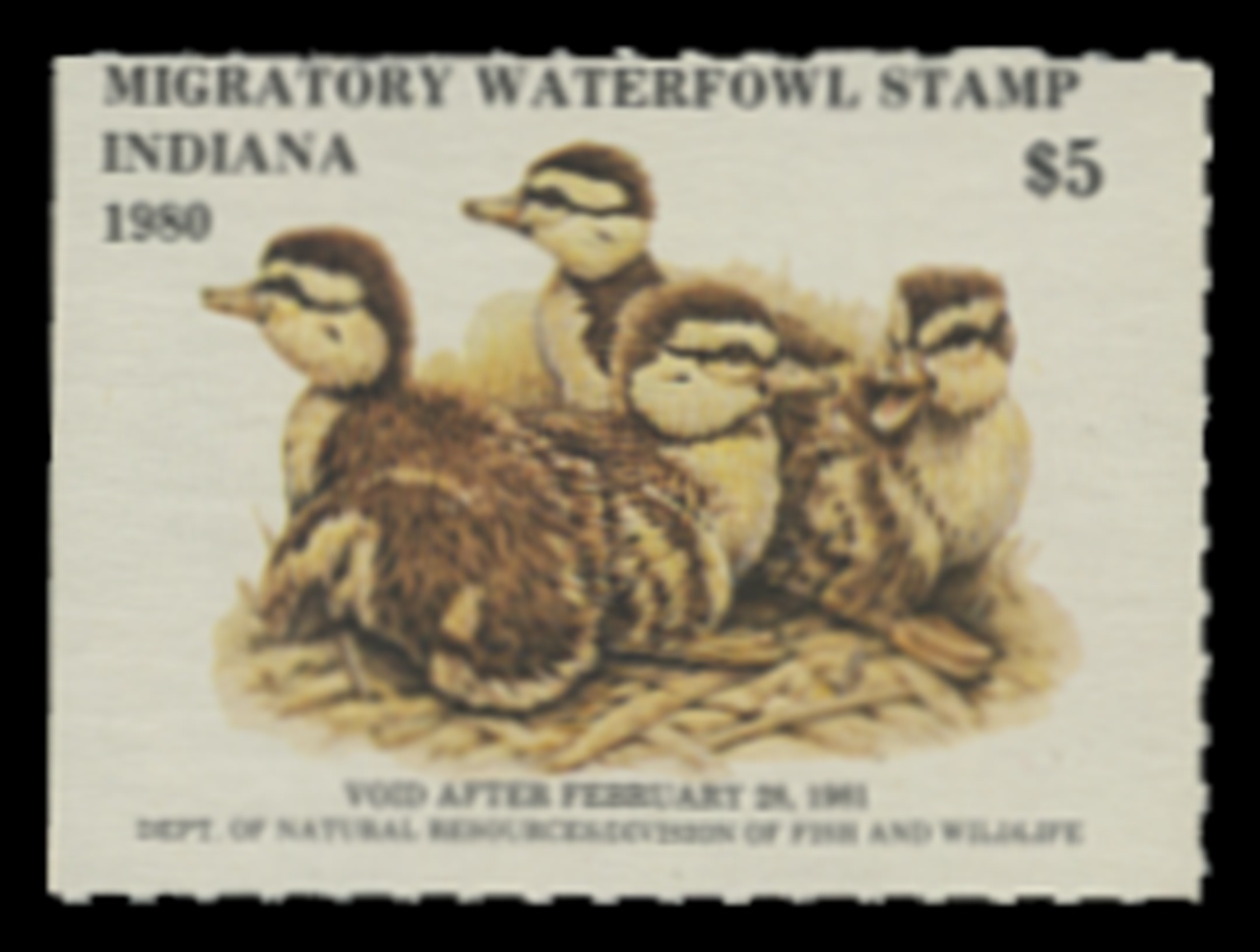 IN5 1980 State Duck Stamp. Mint Never Hinged. Very Fine. A Brood of Mallards by Dean Rocky Barrick.