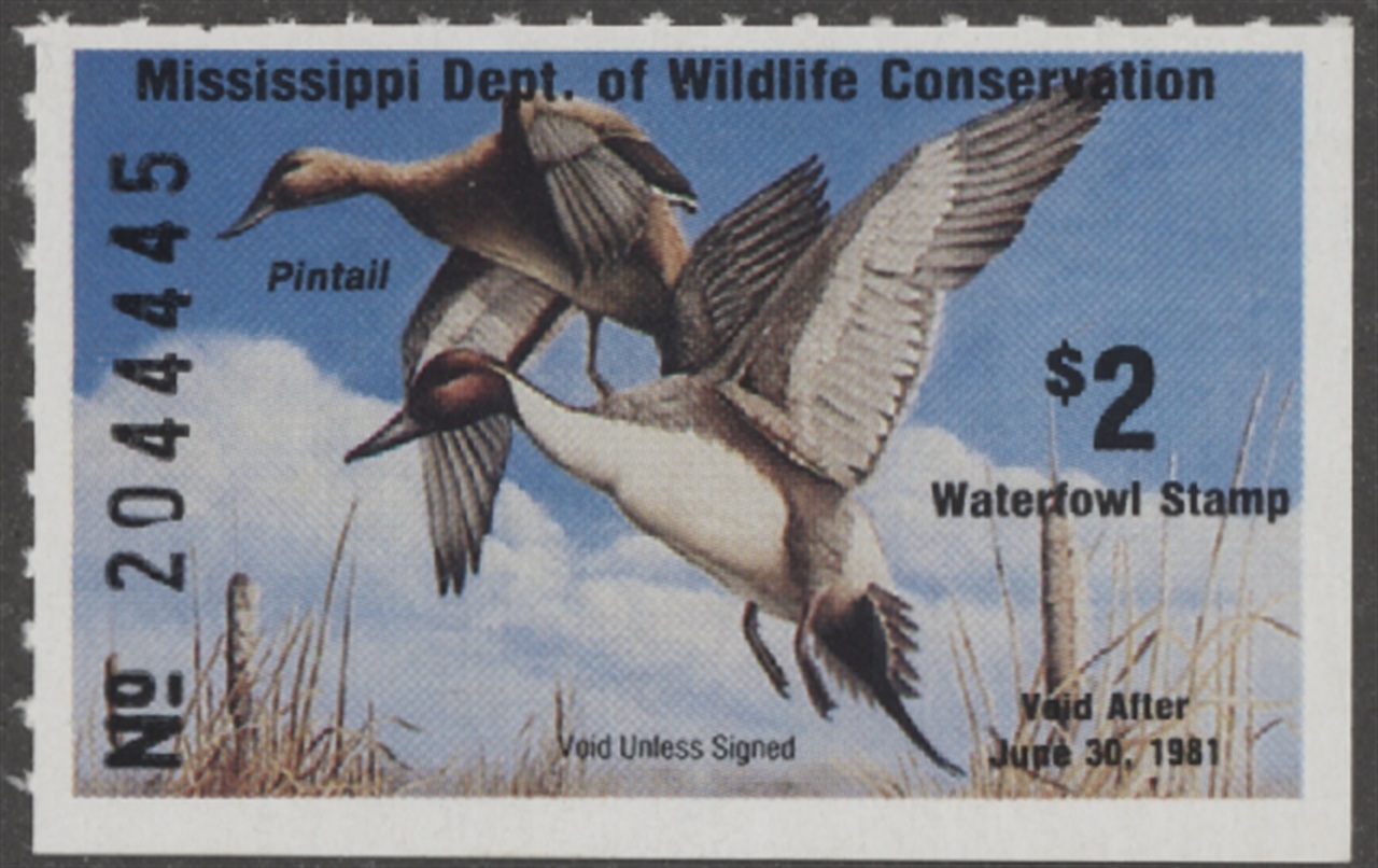 MS5 1980 State Duck Stamp. Mint Never Hinged. Very Fine. Pintails by Bob Thompkins.