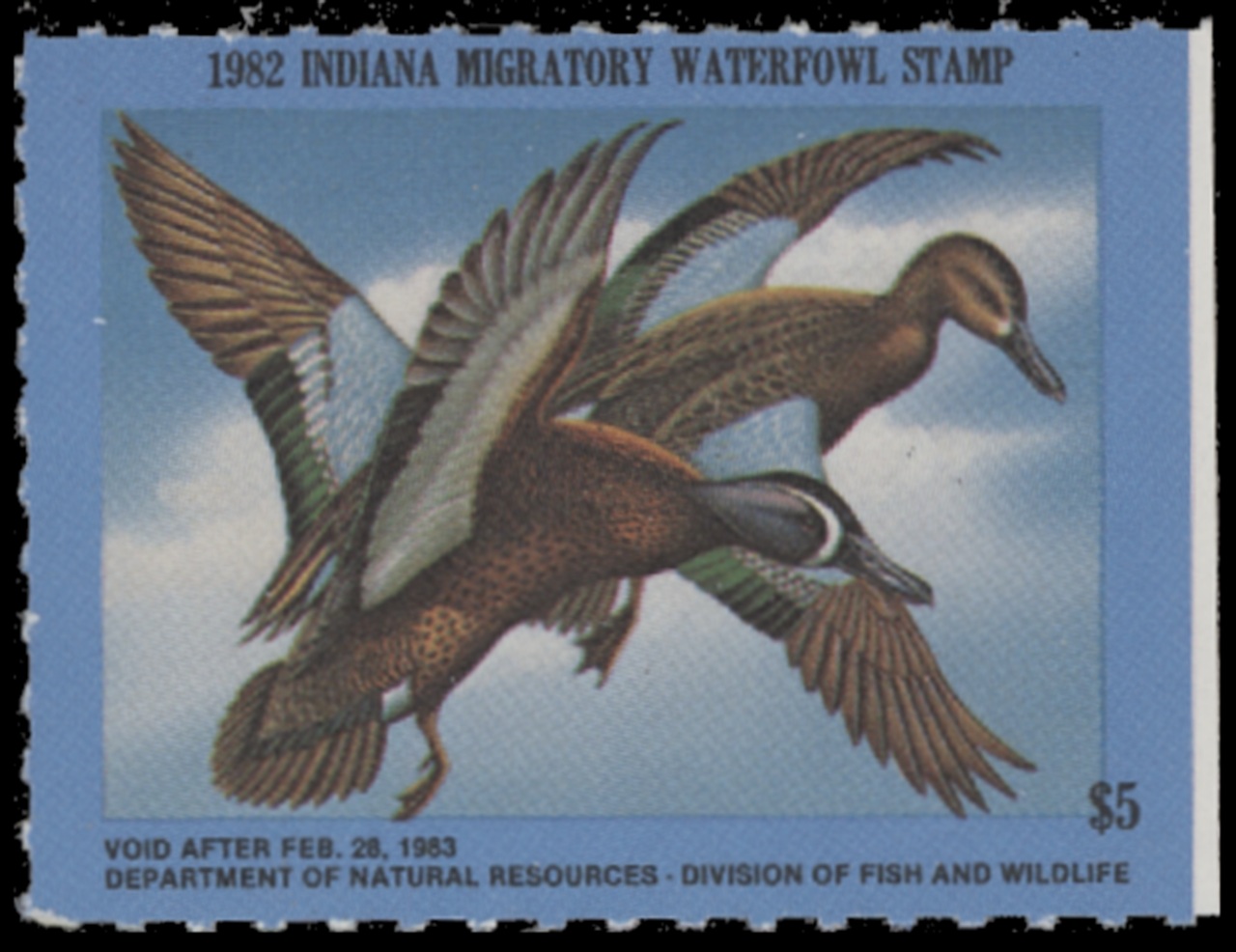 IN7 1982 State Duck Stamp. Mint Never Hinged. Very Fine. Pair of Blue-wing Teal by George Metz.