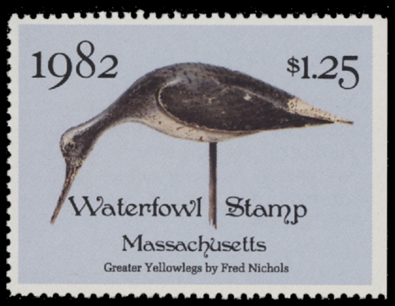 MA9 1982 State Duck Stamp. Mint Never Hinged. Very Fine. Gray Yellowlegs by John F. Eggert.