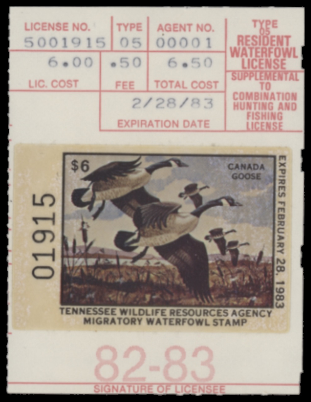 TN4 1982 State Duck Stamp. Mint Never Hinged. Very Fine. Canada Geese by Ken Schulz.