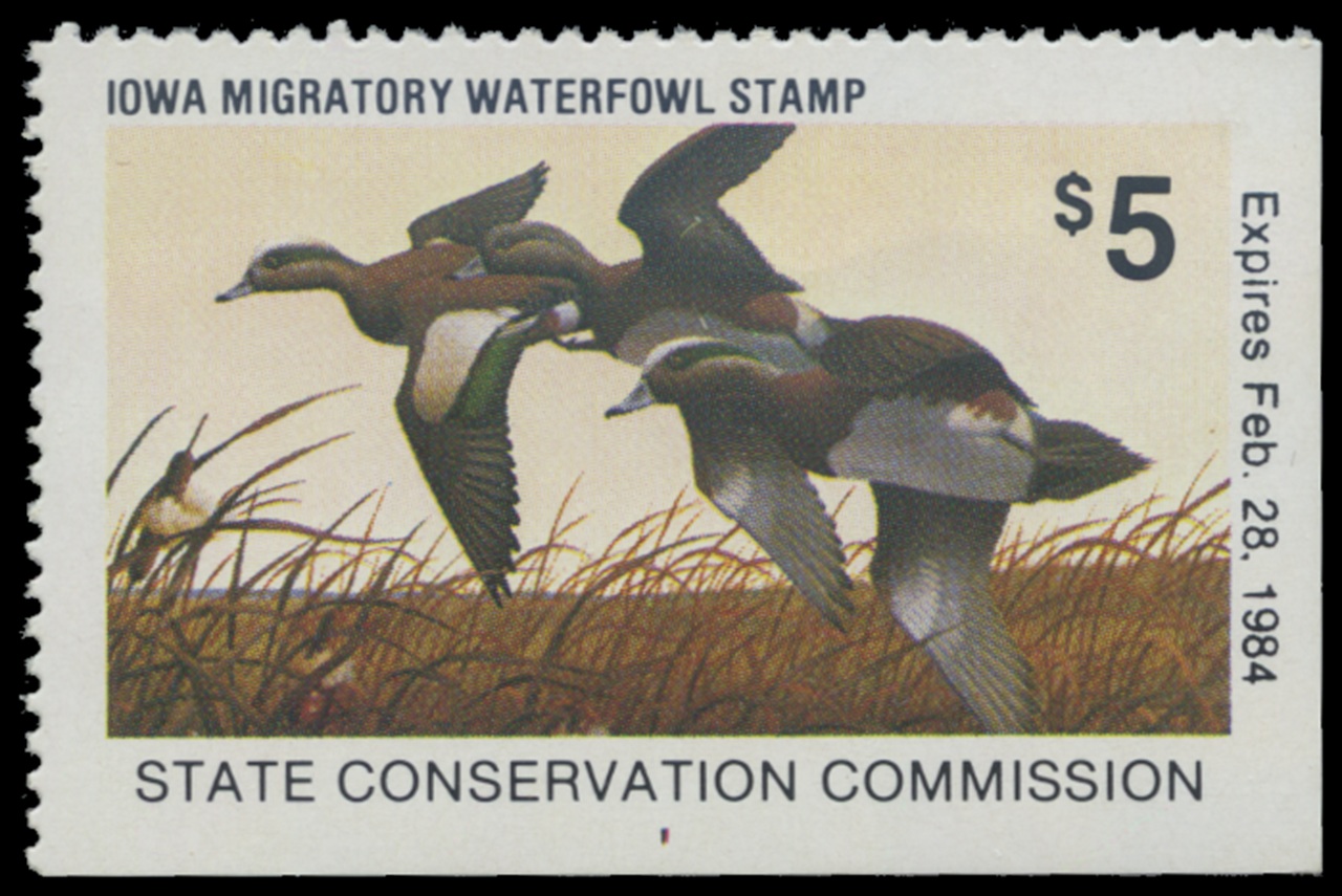IA12 1983 State Duck Stamp. Mint Never Hinged. Very Fine. Widgeons by Paul Bridgford.