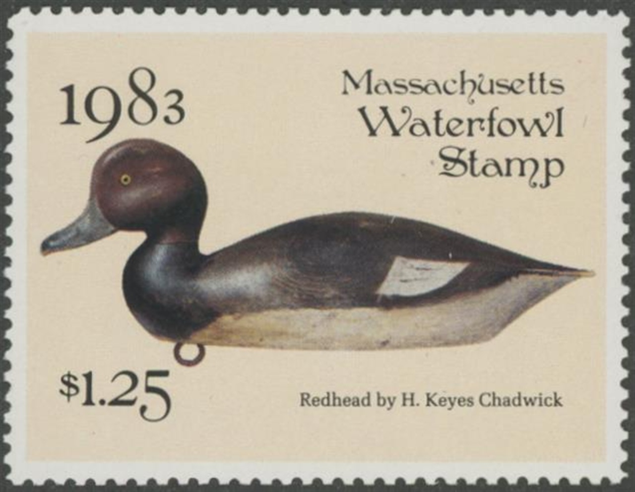MA10 1983 State Duck Stamp. Mint Never Hinged. Very Fine. Redhead Duck by Randy Julius