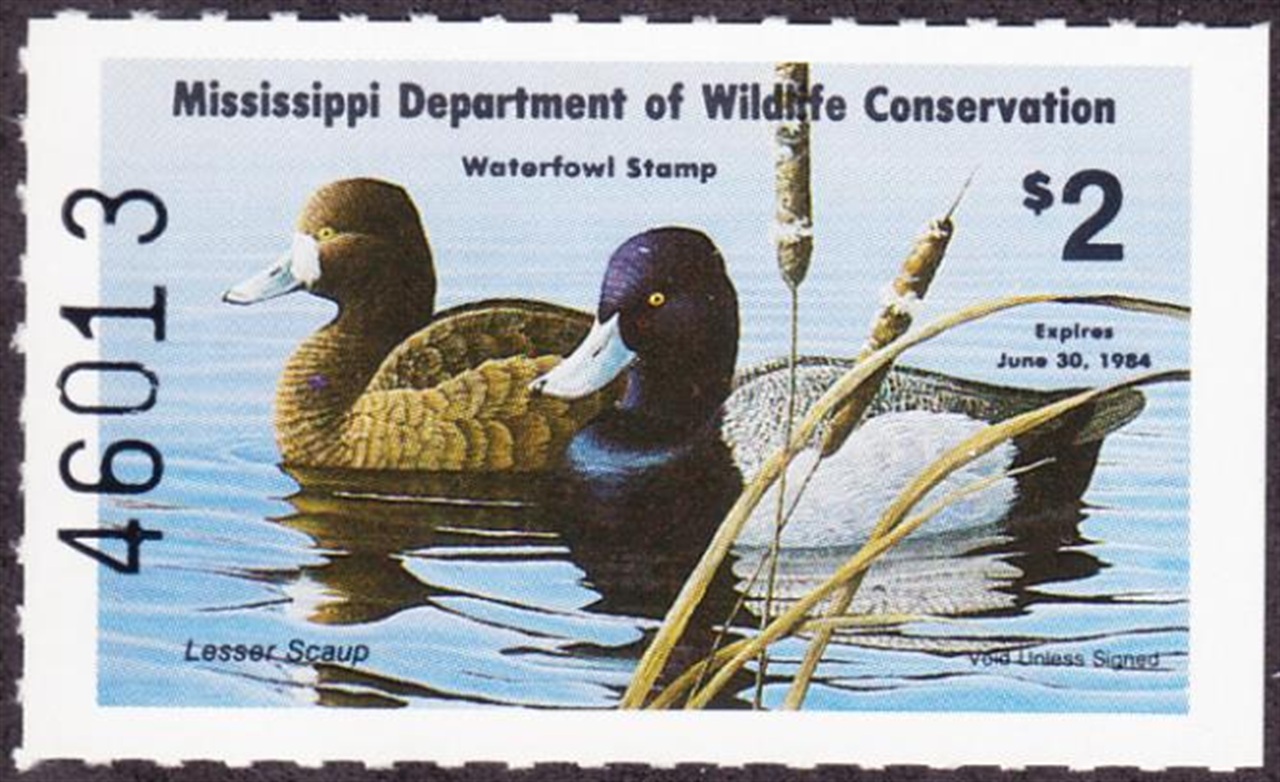 MS8 1983 State Duck Stamp. Mint Never Hinged. Very Fine. Lesser Scaup by Jerry Glasper.