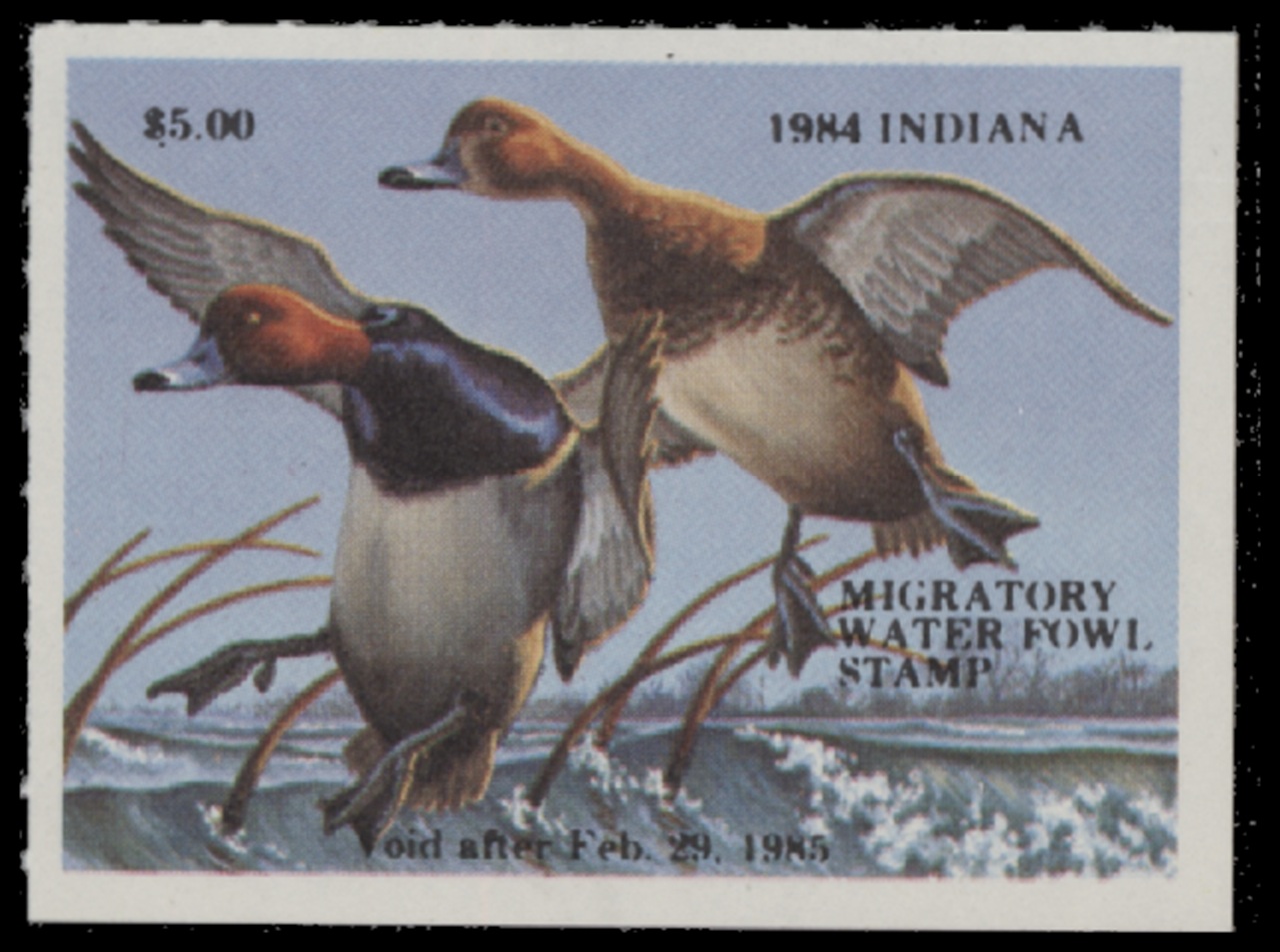 IN9 1984 State Duck Stamp. Mint Never Hinged. Very Fine. Serif Serial Number. Pair of Redheads by Lynn Briggs.