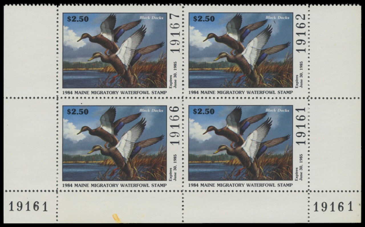 ME1 1984 State Duck Stamps. Mint Never Hinged. Very Fine. Black Ducks by David A. Maass.