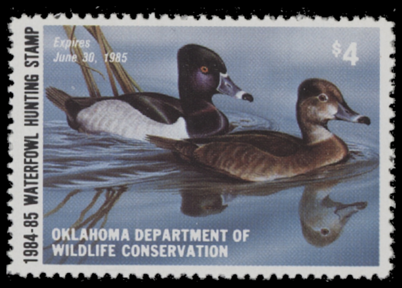 OK5 1984 State Duck Stamp. Mint Never Hinged. Very Fine. Ring-necked Ducks by Hoyt Smith.