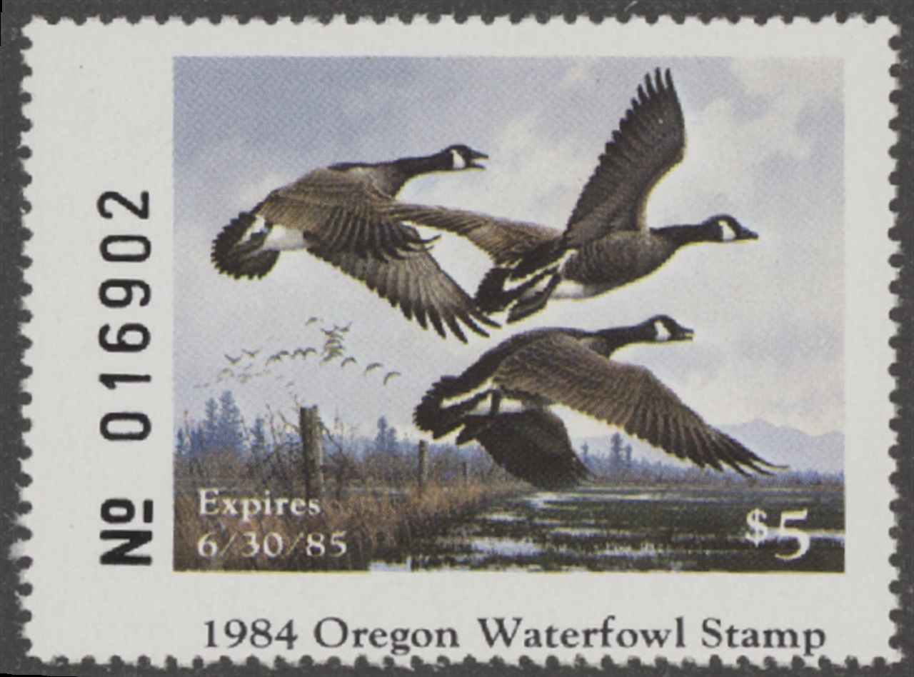 OR1 1984 State Duck Stamp. Mint Never Hinged. Very Fine. Canada Geese by Michael Sieve.