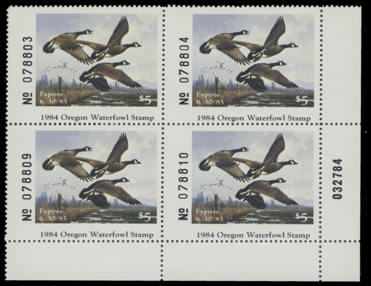 OR1 1984 State Duck Stamp. Mint Never Hinged. Very Fine. Canada Geese by Michael Sieve.