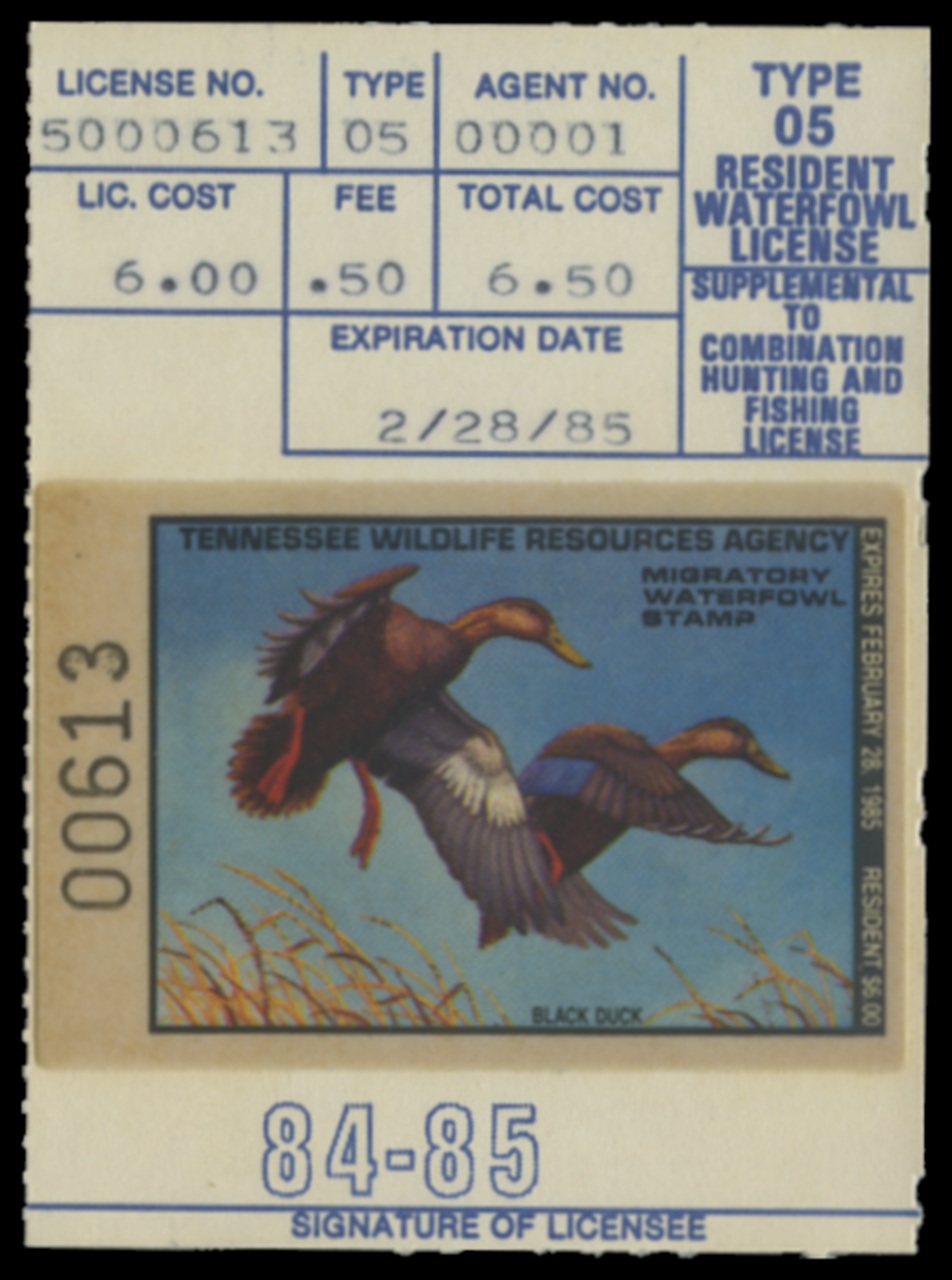 TN6 1984 State Duck Stamp. Mint Never Hinged. Very Fine. Black Ducks by Dr. Allen Hughes.