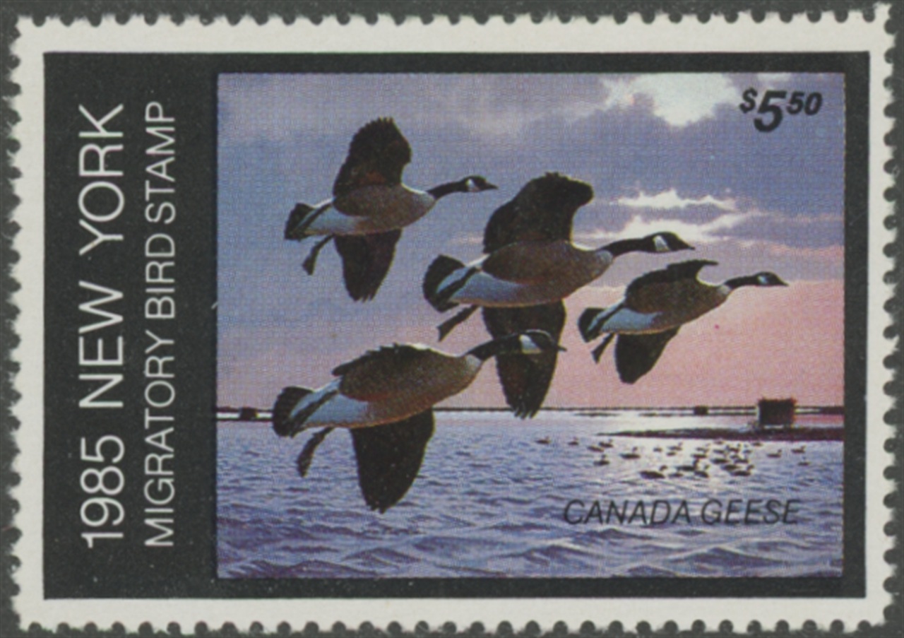 NY1 1985 State Duck Stamp. Mint Never Hinged. Very Fine. Canada Geese by Larry Barton.