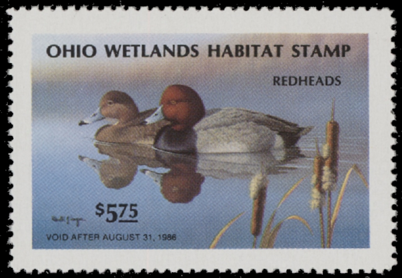 OH4 1985 State Duck Stamp. Mint Never Hinged. Very Fine. Red-headed Ducks by Ronald J. Louque.