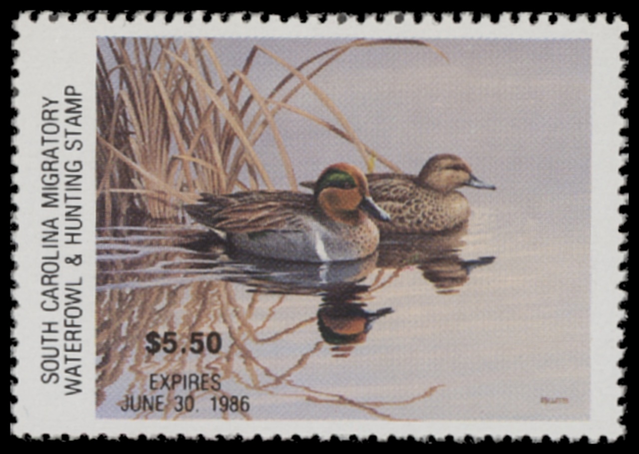 SC5 1985 State Duck Stamp. Mint Never Hinged. Very Fine. Green-winged Teal by Rosemary Millette.