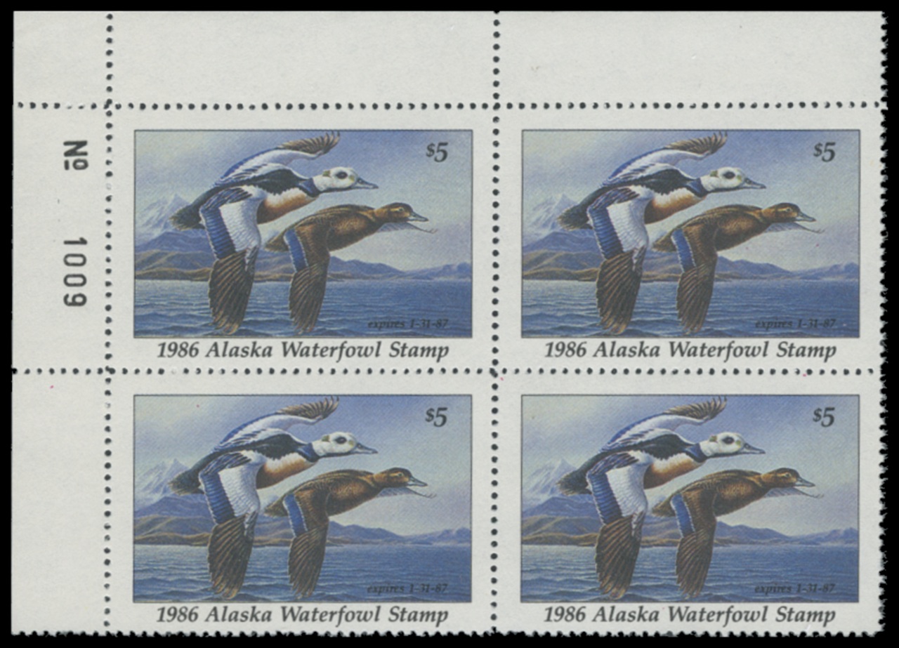 AK2 1986 State Duck Stamps. Mint Never Hinged. Very Fine. Steller's Eiders by James Meger.