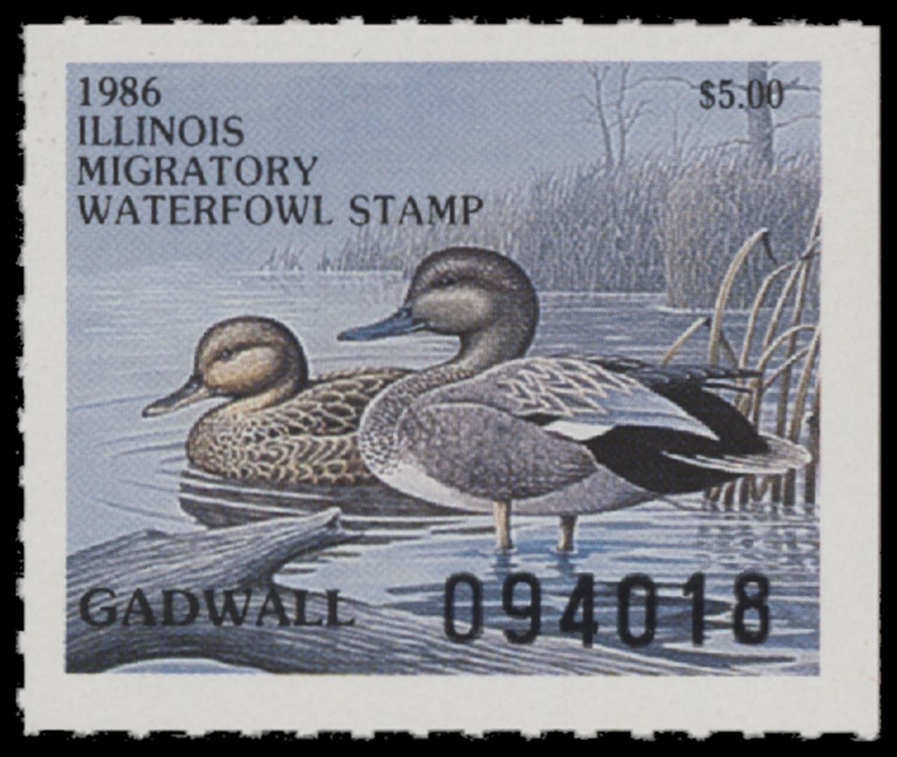 IL12 1986 State Duck Stamp. Mint Never Hinged. Very Fine. Gadwalls by Arthur Sinden.