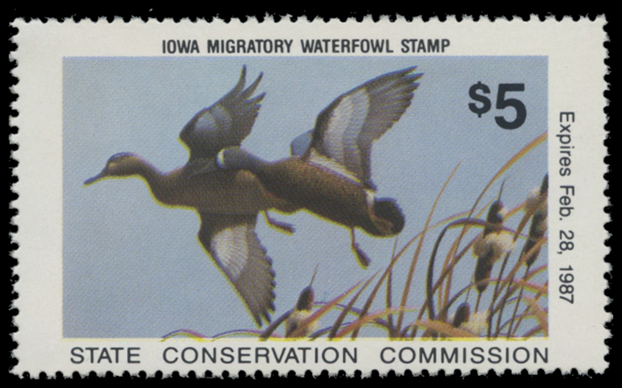 IA15 1986 State Duck Stamp. Mint Never Hinged. Very Fine. Blue-wing Teal by Paul Bridgford.
