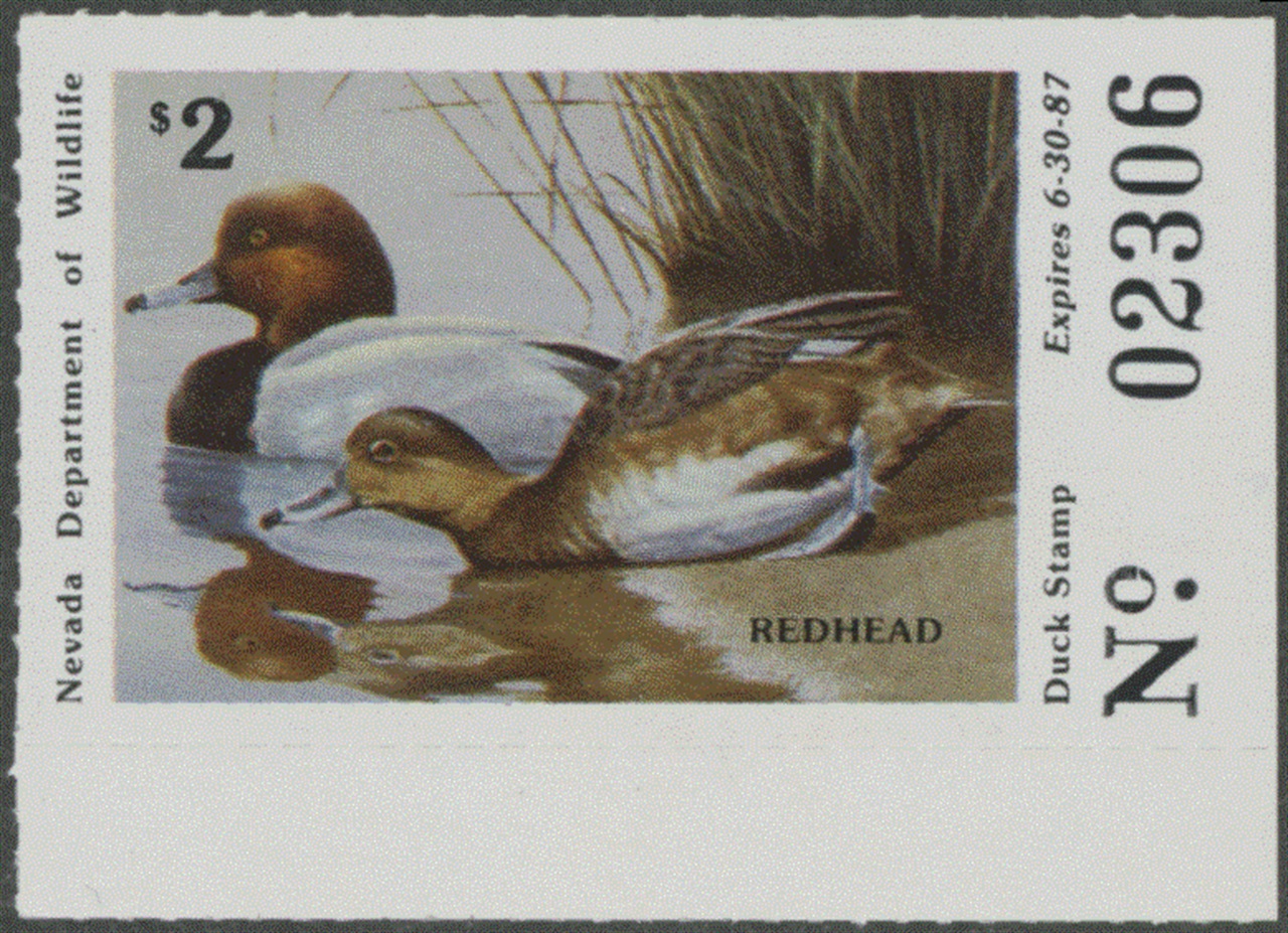 NV8 1986 State Duck Stamp. Mint Never Hinged. Very Fine. Redhead Ducks by Nolan Haan.
