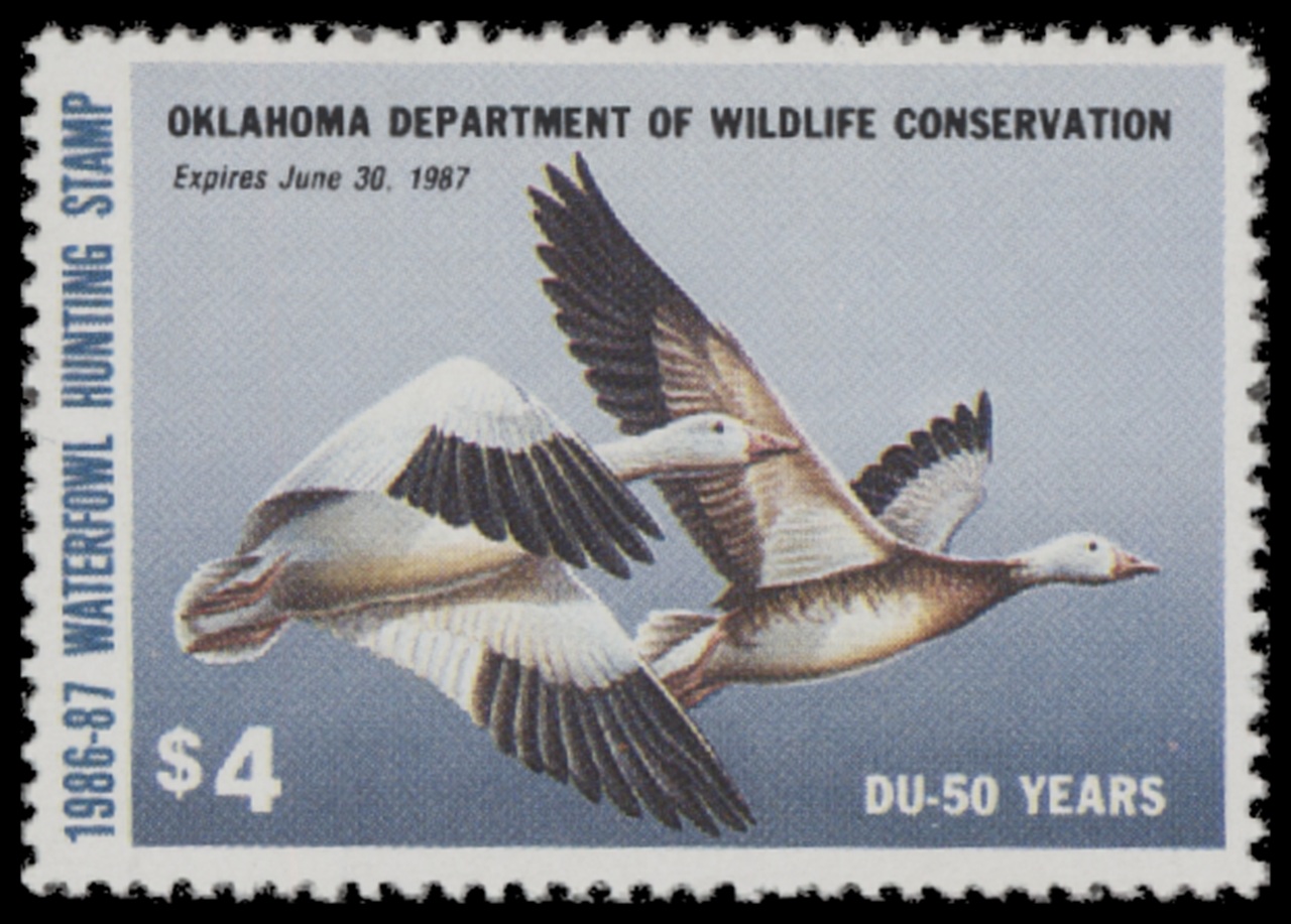 OK7 1986 State Duck Stamp. Mint Never Hinged. Very Fine. Snow Geese by Hoyt Smith.