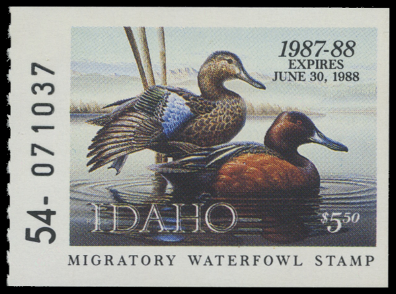 ID1 1987 State Duck Stamp. Mint Never Hinged. Very Fine. Cinnamon Teal by Rob Leslie.