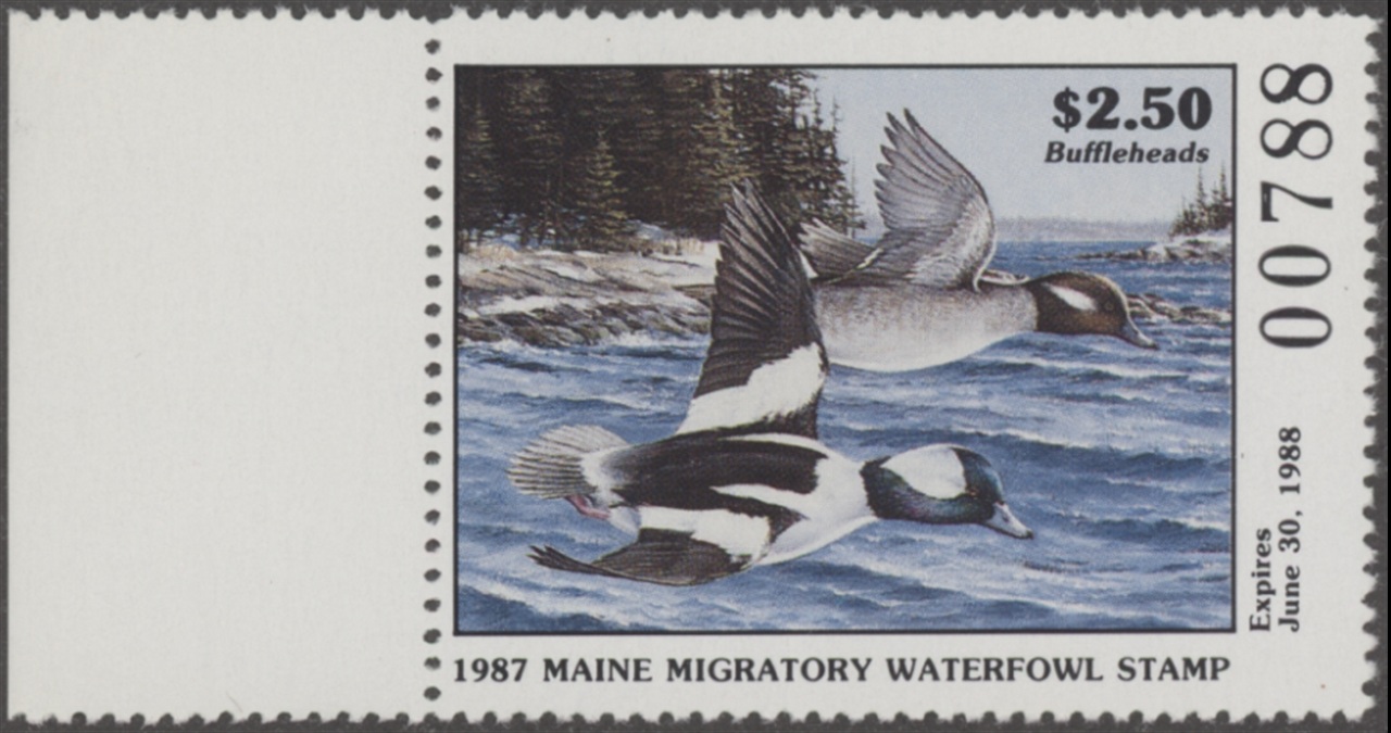 ME4 1987 State Duck Stamp. Mint Never Hinged. Very Fine. Buffleheads by Ron Van Gilder.