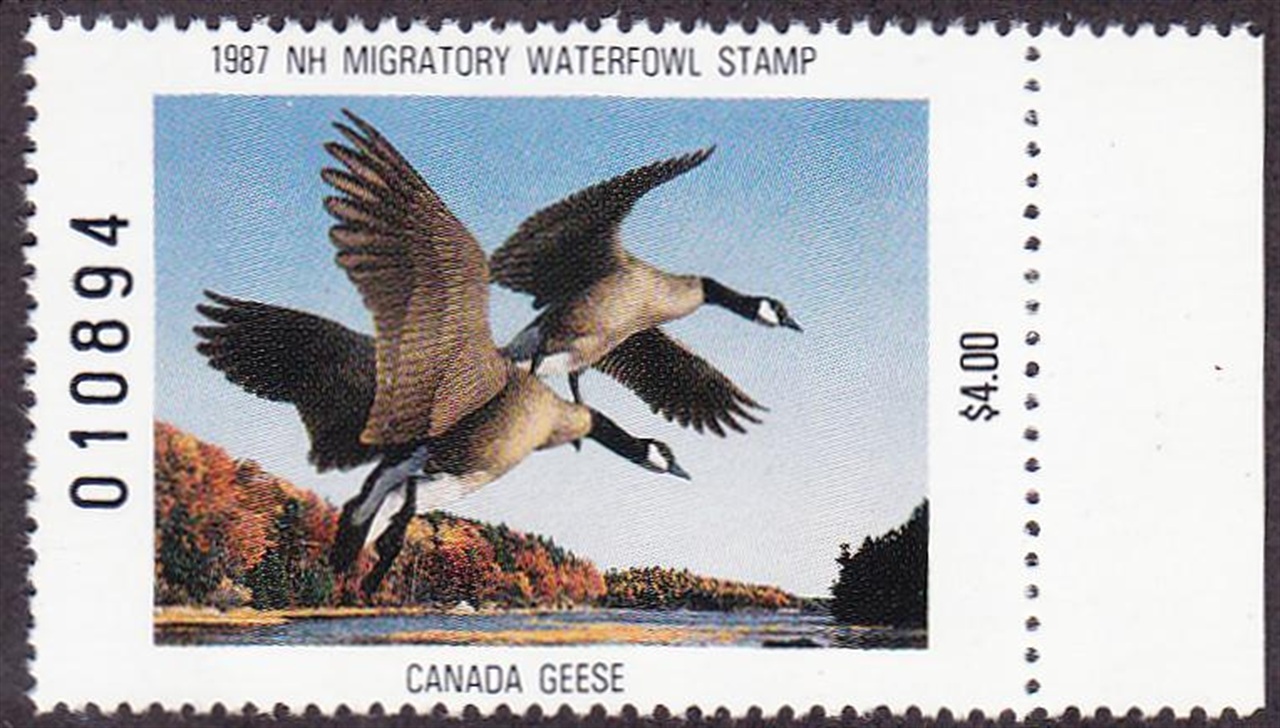NH5 1987 State Duck Stamp. Mint Never Hinged. Very Fine. Canada Geese by Robert Steiner.