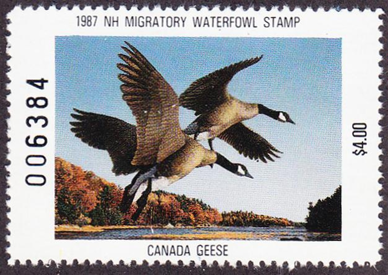 NH5 1987 State Duck Stamp. Mint Never Hinged. Very Fine. Canada Geese by Robert Steiner.
