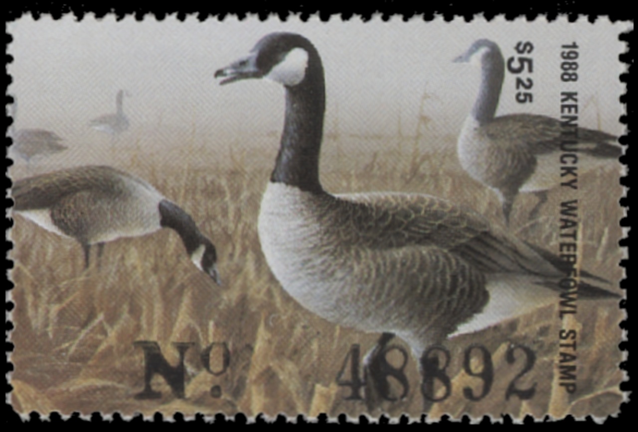 KY4 1988 State Duck Stamp. Mint Never Hinged. Very Fine. Canada Geese by Lynn R. Kaatz.
