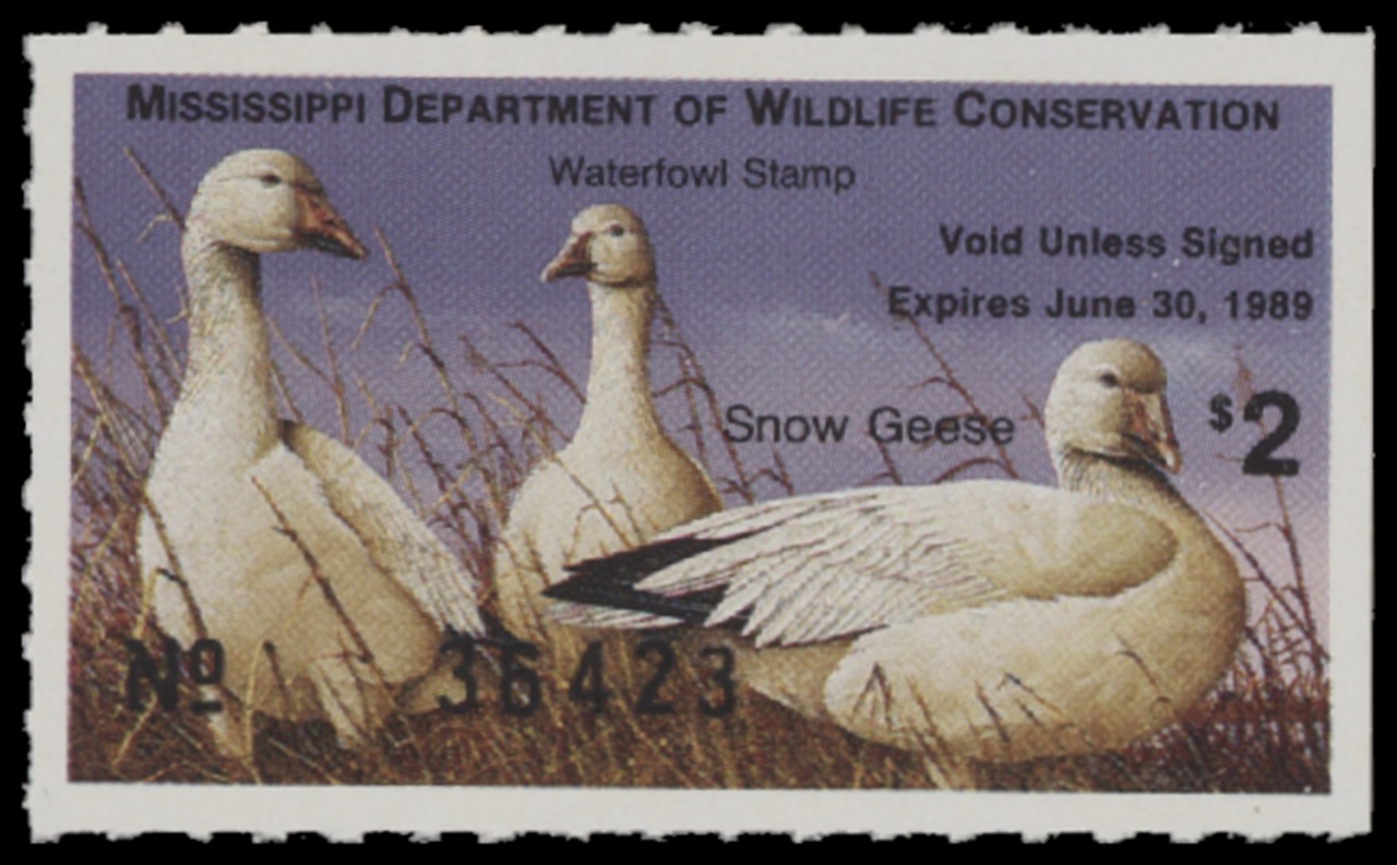 MS13 1988 State Duck Stamp. Mint Never Hinged. Very Fine. Snow Geese by Bob Tompkins.